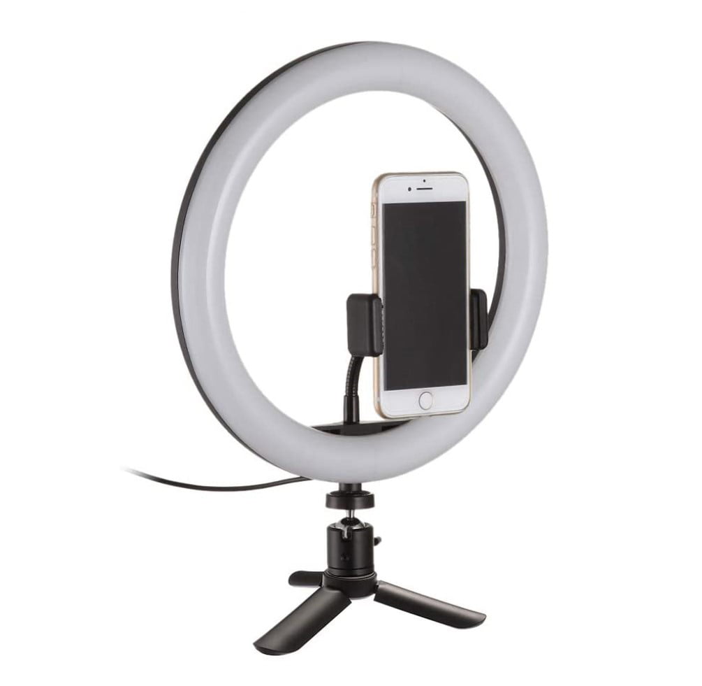 This is a nice little ring light for doing makeup or recording videos sitting down or at a table top! Also travel friendly. It’s a great size. Highly recommended!